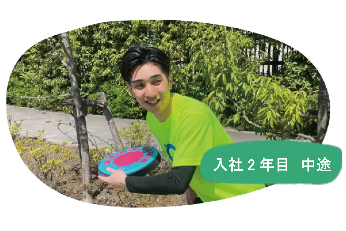以前は遊具メーカーで営業職をしていましたが、子どもと直接関わることができる環境で仕事がしたく入社しました。普段のレッスンだけでなく、イベント企画もゼロから作り上げ、実施した時に子どもたちが喜んでいる姿を見られた時が一番気持ちがいいです!また、他のスタッフが過ごしやすい環境や大学生とのコミュニケーションを円滑にするための企画も行い、子どもだけでなく大人の”居場所づくり”を考えるとともに自身の考え方や価値観を柔軟にしていくことも大切な要素となり、他の企業では得られない充実感を感じることができます。